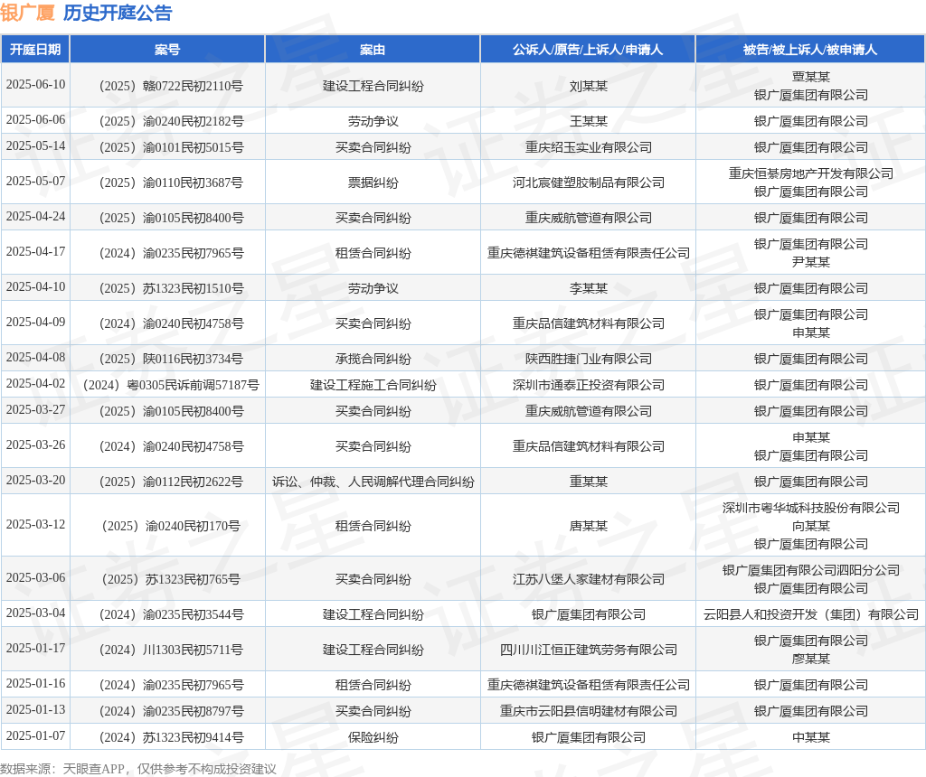 本站消息,根据天眼查APP显示,近日公布了一则银广厦集团有限公司作为被告/被上诉人的开庭公告,详细内容如下: